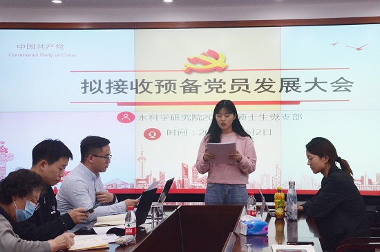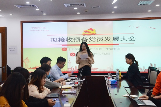 党员预备期的设立,是为了对新党员进行严格的党的组织生活和实际工作锻炼。两次党员发展大会后,有六名优秀的发展对象发展成为了预备党员,壮大了水科院2019级硕士生党支部的队伍。经过发展对象汇报、支部讨论,六名预备党员进一步明确了自己的入党动机,深化了对党的认识,规划了今后学习进步的方向,在今后一年的预备期中,需要时刻按照党员的标准严格要求自己,自觉接受党组织对自己的教育和考察,争取按期转正。