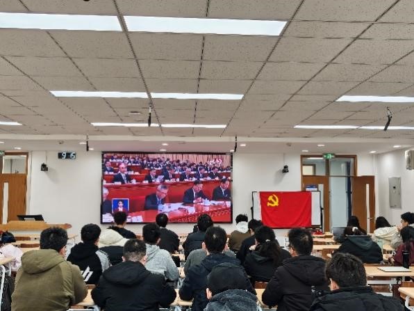 2025年3月5日上午9时,第十四届全国人民代表大会第三次会议在北京人民大会堂隆重开幕。为深入学习贯彻“两会”精神和国家发展战略,swag视频 组织学生党支部集中观看开幕会直播,共同聚焦国家发展大局。