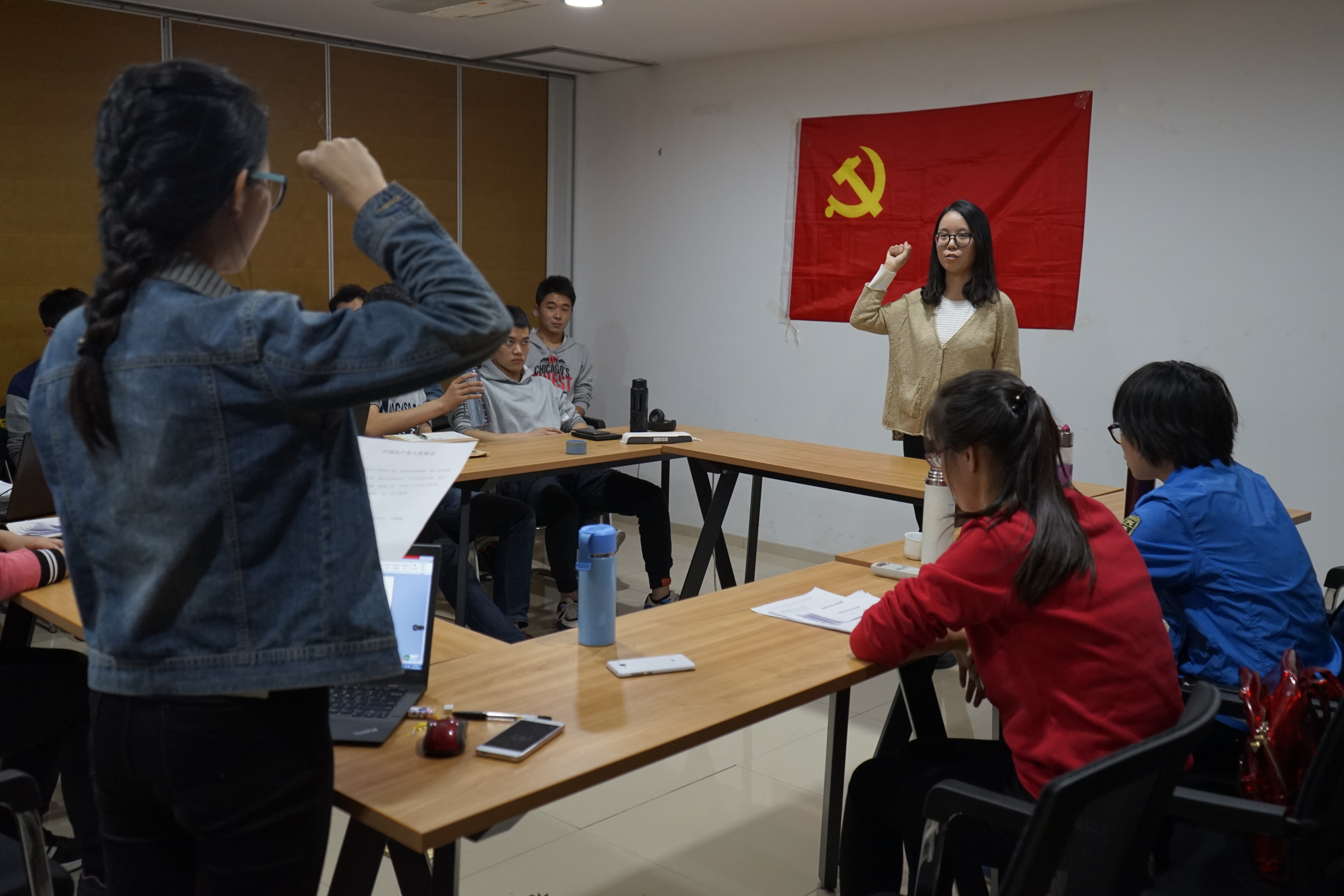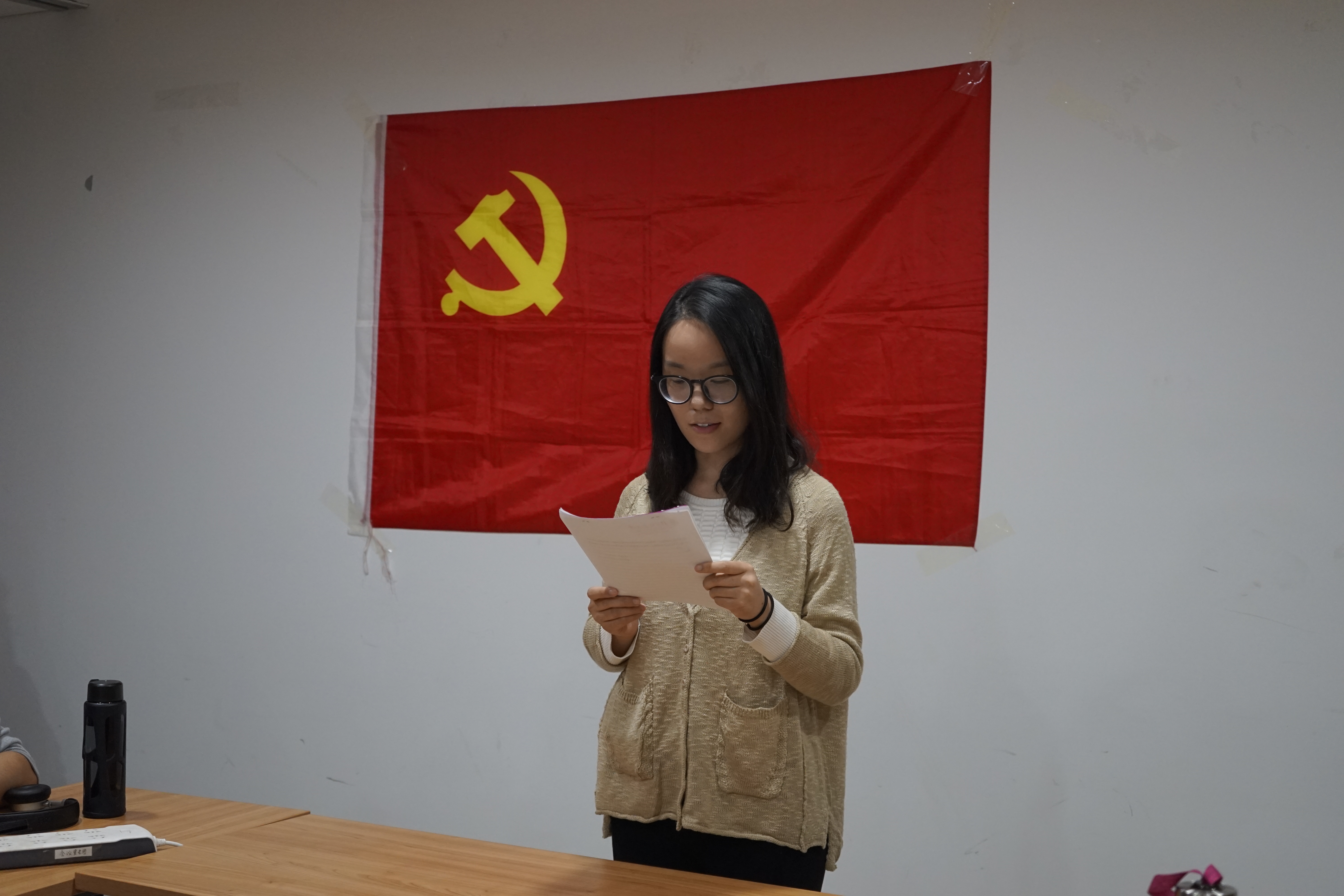 会议上司傲男同志介绍了自己在预备期间的政治思想和学习生活等各方面的情况,在党旗下庄严地宣读转正申请书。支部的同学针对司傲男同志的转正申请进行了讨论,提出了需提高和进步的方面。经过讨论,认为司傲男同志在预备期内能按照党员标准严格要求自己,发挥了一个共产党员应有的模范作用,具备了一名共产党员应有的条件,同意其按期转正。支部无记名投票环节全票通过,支部书记张园园宣读了大会决议,同意接收司傲男同志加入中国共产党。