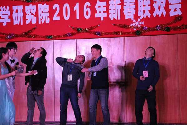 本次晚会在热闹欢快的开场舞《Bar Bar Bar》中拉开帷幕,之后许院长上台讲话,给师生们带来了新年的祝福,并简要提出了学院下一步的工作计划。晚会的节目形式丰富多样,包括《红日》、《对你爱不完》、《军港之夜》、《星语》、《日不落》、《海芋恋》等不同时代的歌曲,现场氛围时而热烈、时而欢快、时而安逸,将在座的师生们带入到了不同的情感中去。本场晚会的笑点几乎被小品《试镜》所包揽,研一的同学们丝毫没有怯场,他们的每一个动作每一句言语都为台下的观众们带去了阵阵欢笑。研三的同学们演唱了一首《学院南路的日子》,用歌声传达了他们即将毕业时对学院的留恋与不舍,动人的歌声,真挚的歌词让台下的师生们纷纷感动落泪。本场晚会设有两轮游戏环节,共分为四个游戏,分别是第一轮的《饼干大作战》、《逛园子》和第二轮的《水果蹲》、《疯狂大收集》游戏,在游戏的过程中师生们团结合作,亲密互动,加强了师生间的交流。本次晚会还为到场的师生们带去了惊喜,除了小零食外,本次晚会共设置三轮抽奖环节,分为一、二、三等奖,而本晚最大的赢家莫过于朱明承和张旭两位同学,获得了本场晚会的一等奖。最后全场晚会在青春洋溢的《青春修炼手册》中落下帷幕。