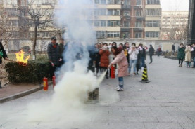 上午十点,校保卫处吕刚老师首先向学院师生讲解消防安全知识。吕老师详细地介绍了当前高校的消防安全形势,并向同学们展示了学院消防设施的位置与用途,特别是报警按钮的使用。吕老师还介绍了遇到火灾时应使用的逃生技巧。随着学院老师按下报警按钮,警报声立刻响起,楼内播放消防疏散广播,学院师生安全有序地按照既定路线分两路进行逃生演习。疏散逃生演习完毕后,保卫处负责老师又现场介绍了灭火器、消防栓等多种消防器材的使用方法,并指导师生体验互动。