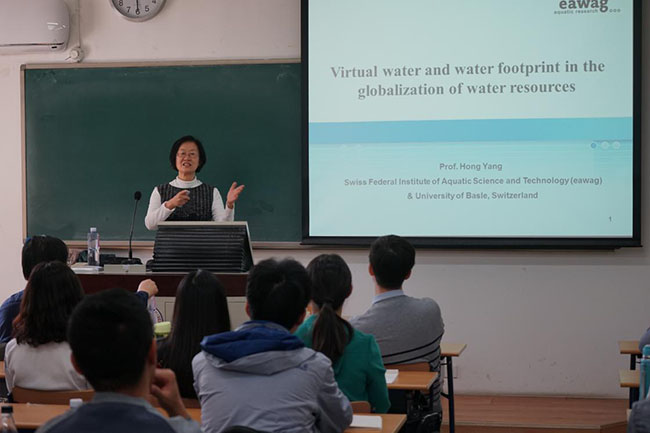 2017年3月10日下午,应我院副院长徐宗学教授邀请,瑞士联邦水科学与技术研究所(Swiss Federal Institute for Aquatic Science and Technology, EAWAG)水、粮食和环境研究学科带头人兼瑞士巴塞尔大学环境科学学院名誉教授杨红教授(Prof. Hong Yang)做客 “水科学前沿”课堂。徐宗学教授、左德鹏讲师以及swag视频 、中国环境科学swag视频 等单位的师生共计50余人参加了本次学术报告会。