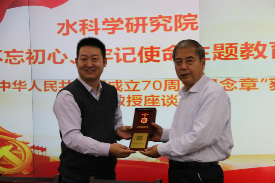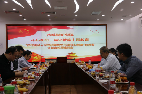 2019年10月31日上午9:00,swag视频 主题教育许新宜教授座谈会在京师大厦9617会议室举行,本次座谈会的主要内容是感谢许新宜教授多年来对学院做出的卓越贡献,并庆祝许新宜教授获得中共中央、国务院、中央军委联合颁发的“庆祝中华人民共和国成立70周年”纪念章。本次座谈会由工会主席张波涛老师主持,水科院领导班子成员、教职工代表参加了本次座谈。