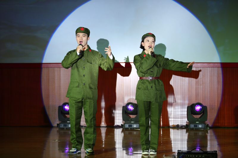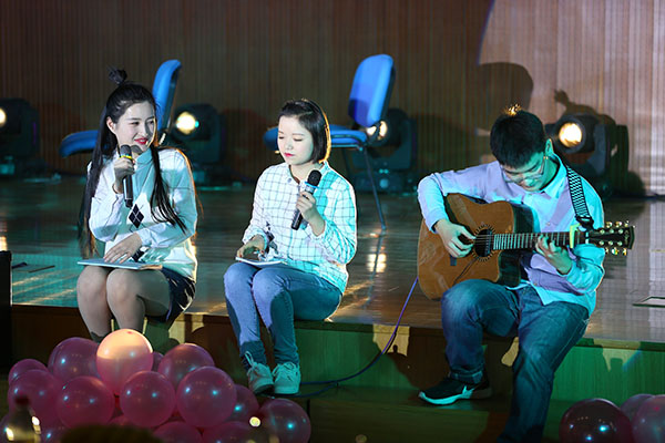 吉他弹唱《小幸运》、《春风十里》先后登场,配合他们演唱的情景剧演员们娴熟的演技、生动的表情、到位的动作将故事展现地淋漓尽致,场面温馨。