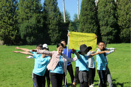 活动首先进行了分组。短暂热身之后,学员们在素拓教练的协助下以小组为单位进行了热身运动、队伍建设等一系列以破冰为目的的团队活动。在队伍建设活动中,学员们以小组为单位进行讨论,集思广益,设计出了别具一格的队名、队旗、队训等。