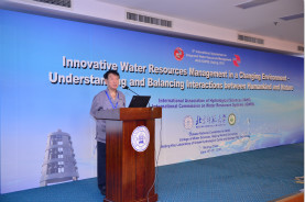 开幕式结束后,我院创始人刘昌明院士、苏黎世联邦理工学院(ETH)Wolfgang Kinzelbach教授、前国际水文科学协会主席Kuniyoshi Takeuchi教授分别做了Loucks Lecture,前国际水文科学协会副主席Dan Rosbjerg教授、夏军院士和Andreas Schumann教授做大会特邀报告。随后2天的学术报告分为三个分会场,分别围绕着“Water resources management under changing environment”、“Socio-hydrology as the basis of water resources management”和“Assessment of available water resources at regional and basin scales”开展研讨,来自五大洲20余个国家和地区的100余位专家学者通过口头报告或墙报展示,介绍了自己的最新研究成果,并展开了深入的讨论和交流。