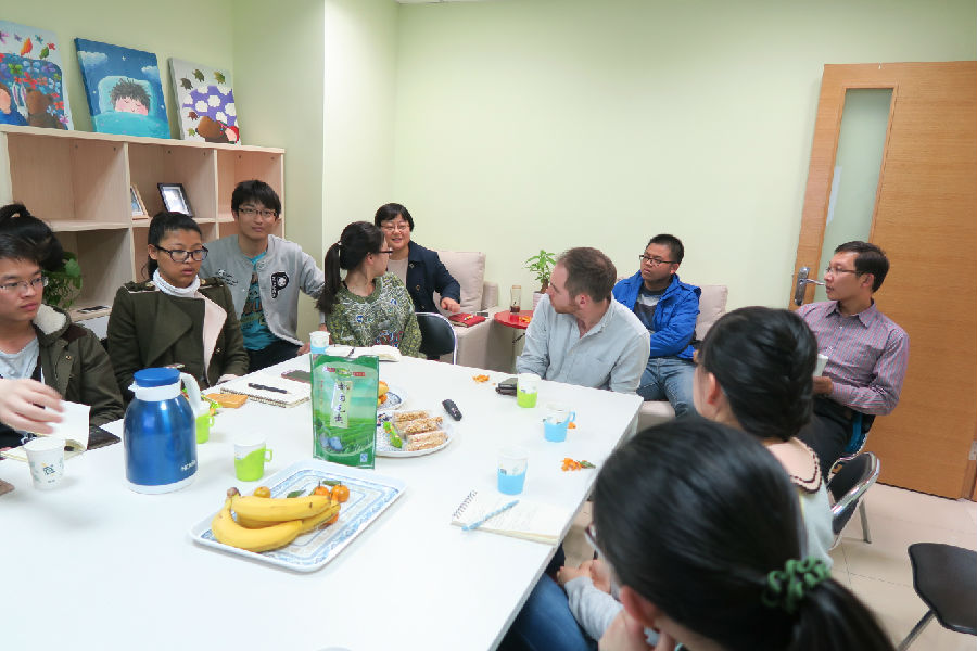 2015年4月14日,我院生活指导室举办"出国留学我来讲”座谈会活动,座谈会邀请了我院刚从英国交流回国的潘成忠老师、在美国伯克利实验室作访问学者的王笑雨同学、以及到我院交流的牛津大学澳籍硕士研究生胡文平,他们从老师和学生的双重角度为我们解读了出国留学的神秘之处。