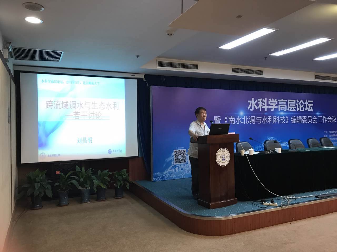 我院创始人、首任院长刘昌明院士围绕我国跨流域调水研究的历史回顾、跨流域调水工程与我国生态文明建设的关系以及全球变化下调水的挑战等几方面作了精彩的学术报告。我院副院长、城市水循环与海绵城市技术北京市重点实验室主任徐宗学教授结合北京市自然科学基金重点项目,以北京市中心城区凉水河、通惠河、清河和坝河为例介绍了北京市洪涝灾害模拟研究成果,并以莲花桥为例介绍了城市低洼区域的洪涝灾害模拟,指出城市产汇流过程复杂,暴雨致灾机理复杂,弄清城市洪涝灾害形成机理是海绵城市建设的基础。
