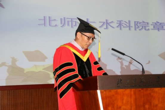 随后,郝芳华校长和宋永会院长为博士毕业生颁发博士学位证书并扶正流苏,我院徐宗学教授、王金生教授和滕彦国教授为硕士毕业生颁发硕士学位证书并扶正流苏。毕业生代表尹文杰博士和石榕涛硕士分别发言,表达了对老师的感激之情,回忆了水科生活的点点滴滴,并为母校送上了真挚的祝福。