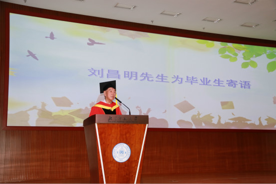典礼上,刘昌明院士为毕业生深情寄语,他展望了水科学专业的发展前景并对毕业生们寄予厚望。最后,2019届毕业生为大家献上合唱《不说再见》,用精心改编的歌词款款道出三年生活的美好瞬间。典礼在庄严的校歌中结束。