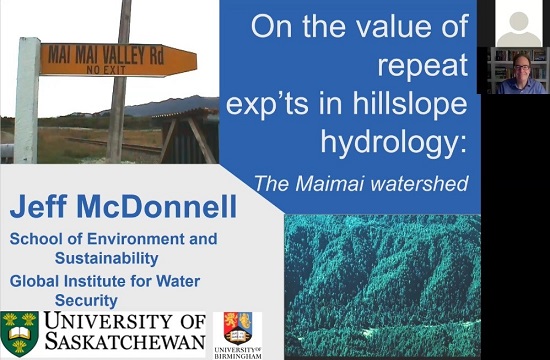 首场报告于北京时间10月10日由国际著名的水文学家、加拿大萨斯喀彻温大学环球水安全研究所副所长Dr. Jeffrey McDonnell教授主讲。Jeffrey教授是加拿大皇家科学院院士、美国地球物理学会(AGU)水文分会主席,在Nature、Science、Nature Geoscience、Nature Sustainability和Nature Climate Change等顶级期刊上发表论文20余篇,是世界上引用率最高的水文学家。